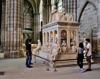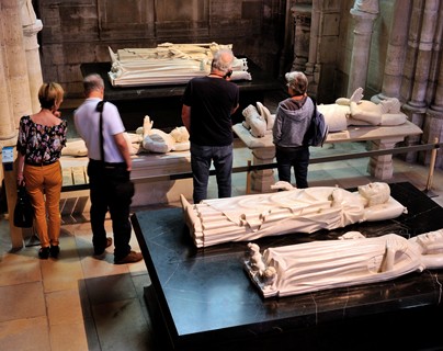 在十二世纪时,苏杰尔修道院长(Abbé Suger)建造了这座世界的第一座哥特式教堂。在其绚烂无比的圣殿内,陈列着世界上独一无二的七十多座死者卧像,他们中的每一座卧像都象征着一个法国王朝。教堂中堂